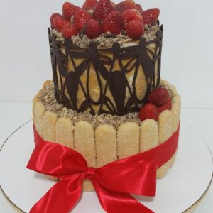 Bolo Jardim e flores e morangos com Biscuit Champagne