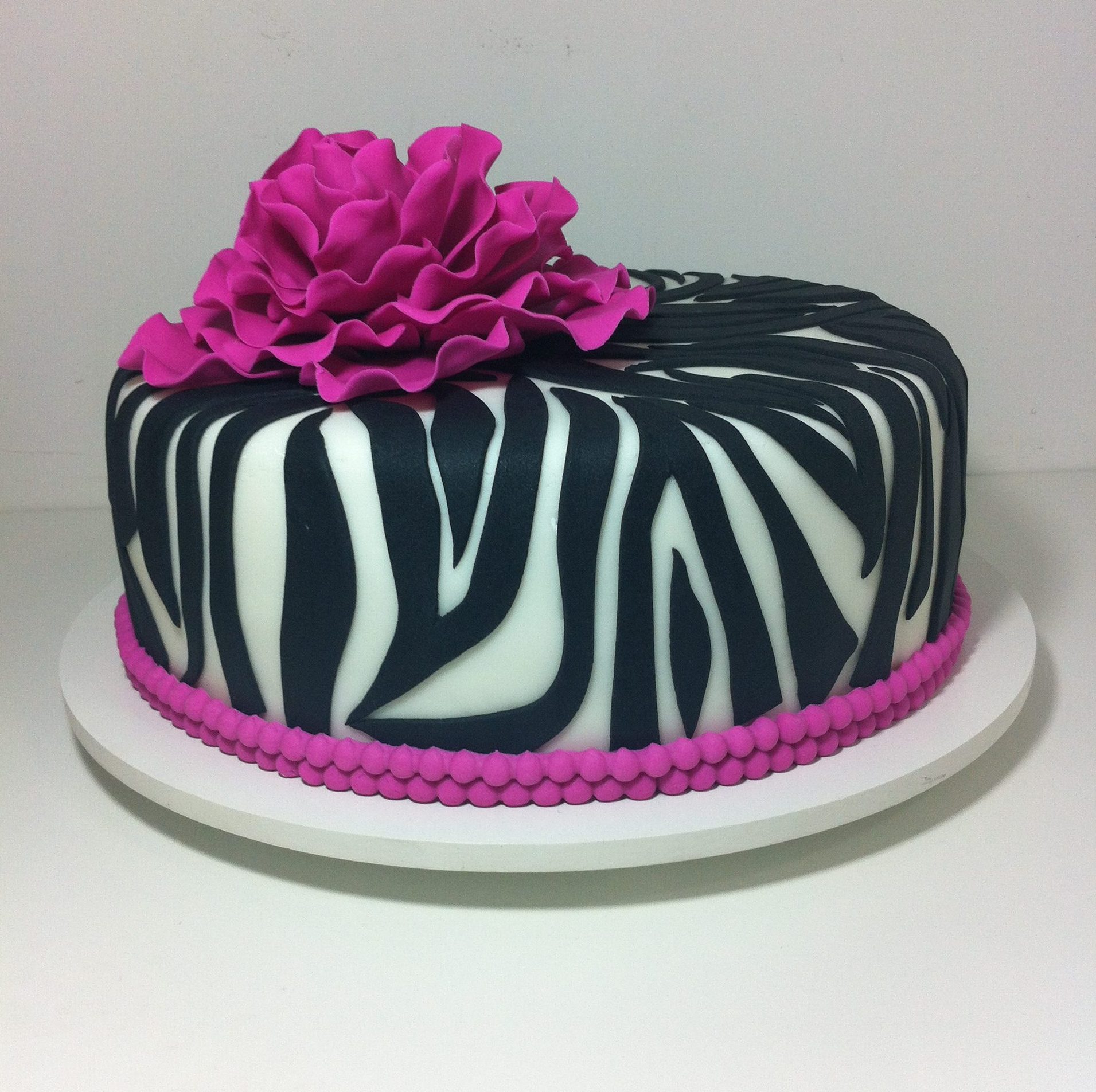 Bolo M , altura padrão, no tema zebra e maxi flor de açúcar.