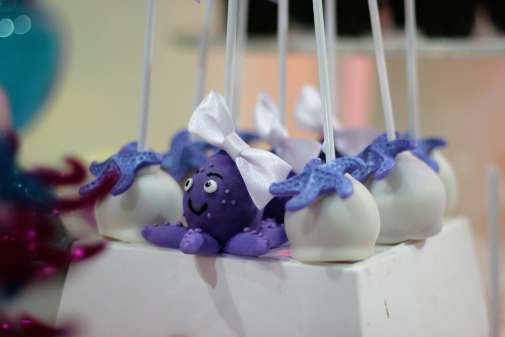 Cake pop do Polvo e estrela do mar para festa da Pequena Sereia.