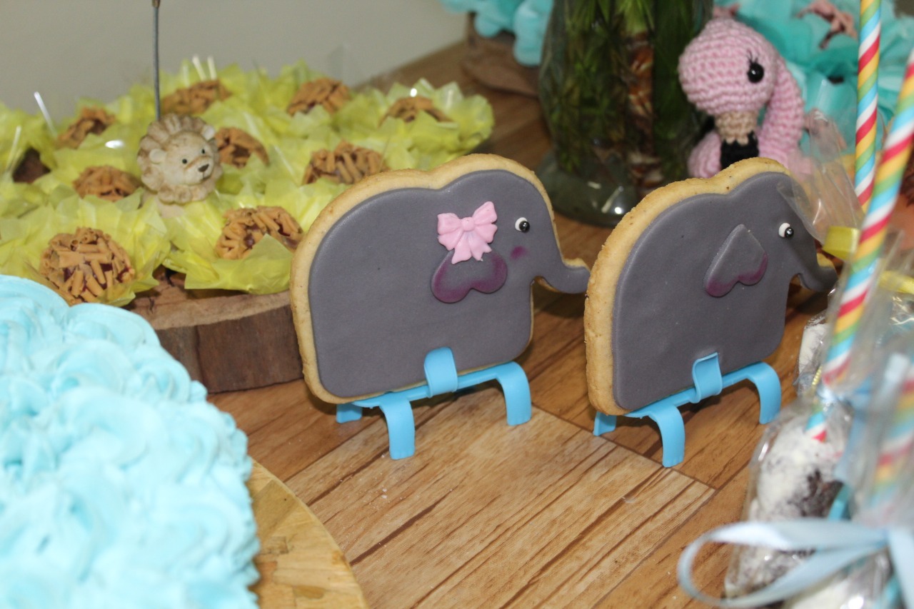 Cookie casal de elefante para uma festa da Arca de Noé.